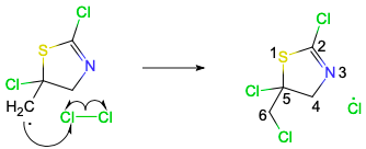 符合增/断键最少的规则。由于有大量氯原子,氯究竟来自何方不好下定论,所以未标出。须成键:S1-C5; C2-Cl; C6-Cl;断键:C5-Cl