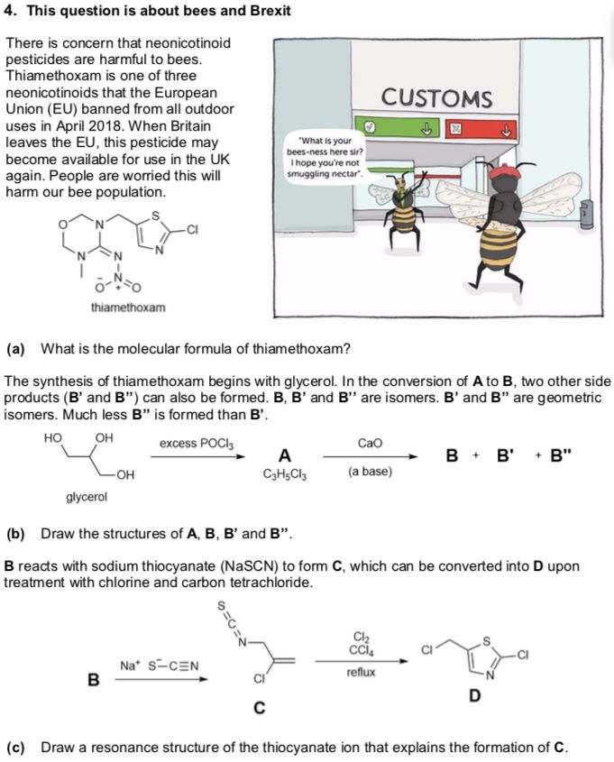 本题来自英国化学奥赛 UKChO2019 第 4 题。先感受一下: