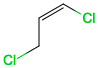 显然,消除的是 Cl1 与 H2 或者 H4 与 Cl5,分别生成 2,3-二氯丙烯与 1,3-二氯丙烯。B'与 B''几何异构,而细想 2,3-二氯丙烯是没有顺反异构体的,那就只剩顺-1,3-二氯丙烯和反-1,3-二氯丙烯了。顺式占绝大多数,因为对交叉是优势构象。参考:大本 P252