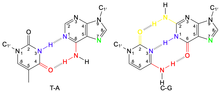 但是,这几个碱基看起来能建立氢键的位点很多(因为杂原子很多),这样的配对方法真的唯一吗?
