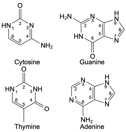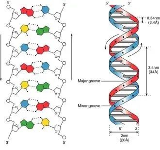 蛋白质中,氨基酸主链的肽键组成了一级结构,而主链的扭曲形成了它的二级结构,侧链间的氢键、双硫桥键等作用形成了三级结构。同样地,在 DNA 中,为了研究二级结构,我们也要先从它的一级结构——碱基间的连接关系入手。