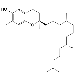 维生素 E 的同效维生素包括了 4 种生育酚和 4 种生育三烯酚,它们在苯甲醇环上甲基的数量和位置上有分别。维生素 E 的得名最早来自于它被发现对大鼠的繁殖起到作用。作为一种脂溶性抗氧化剂,维生素 E 通过提供氢原子来清除自由基。它的脂溶性也使它能够融入细胞膜中,保护细胞膜的完整性。此外,维生素 E 还可以保护维生素 A 不受氧化破坏、防止血小板过度凝集、减少空气污染对肺部的破坏等。神经递质的产生会伴随大量自由基的产生,因此维生素 E 也是相当必要的。