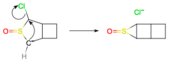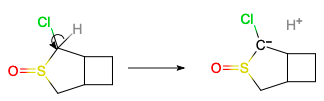 碱最常见的作用就是脱质子,尤其是注意到此处生成负离子。原物质中的酸性碳只有亚磺酰基的两个 α-碳,在这里不大看得出哪个才是最终答案,因此姑且认为它们都是正确答案。