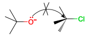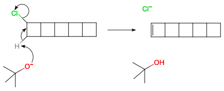 但此处生成的是中性物质,因此不是简单的脱质子,而是消去反应,和中学学的氢氧化钠催化氯乙烷消去成乙烯的反应如出一辙。唯一要注意的是叔丁醇盐作为一个大位阻碱,它的消除反应符合霍夫曼规则,因此提供氢的是取代较少的碳,而不像扎伊采夫规则那样由取代较多的碳提供氢。