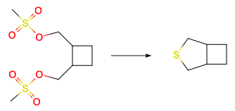 但为什么?为什么这两团甲磺基会缩成一个环?我查了一圈,才查到一个类似题中提到的路径:包含两个羟基的化合物,用甲磺酰氯和强碱甲磺化后,用硫化钠闭环。1