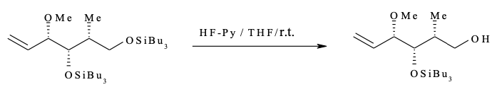 氟化氢与吡啶的络合物是一种专用的试剂,叫做 Olah 试剂。它是比纯氟化氢更安全的氟化剂。但我摊牌了:我不知道在有硅烃基的情况下,它到底是怎么反应的……所以我又去查了文献,找到了这个脱硅机理:2