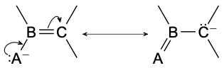• 如果有孤对电子原子 A 临近双键 B=C,则可以把孤对电子沿双键推到另一端的原子 C 上: