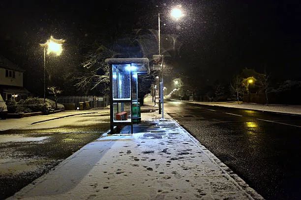 He stopped at a bus station that stood in the snow like an ancient temple, waiting for its pilgrims. The station bathed the faint red-and-green aura from the Christmas lights lining its edges, the only sign of the holiday in the area. He walked under the roof and collapsed on the bench. The simple move seemed to have taken all his strength and sanity. He took a sip from the liquor bottle and stretched himself.