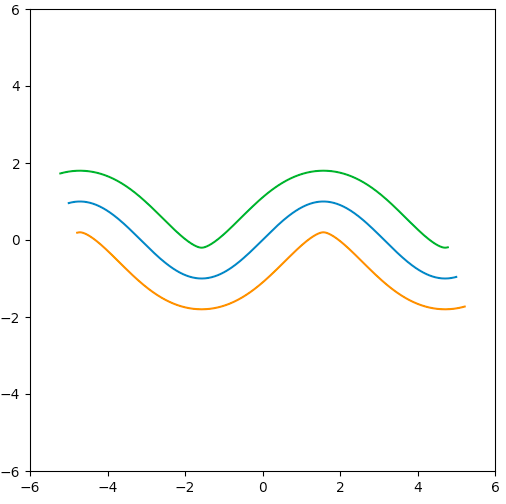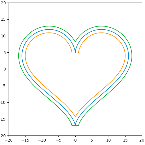 而问题 (2) 更加棘手一点,因为数学上,原曲线在这个突变点左右两边都是垂直向下的,因此向外平移后,它们就应该在顶点的位置无限向下垂直延伸而不该相交。